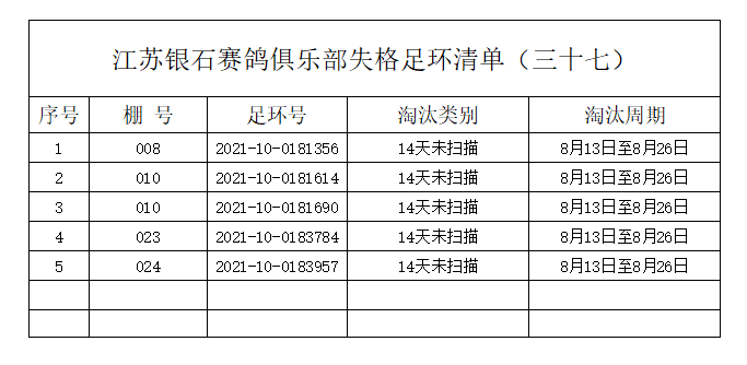 江苏银石赛鸽俱乐部失格足环清单(三十七)