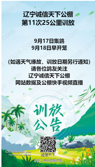 辽宁诚信天下公棚第11次25公里训放公告及数据直播网址