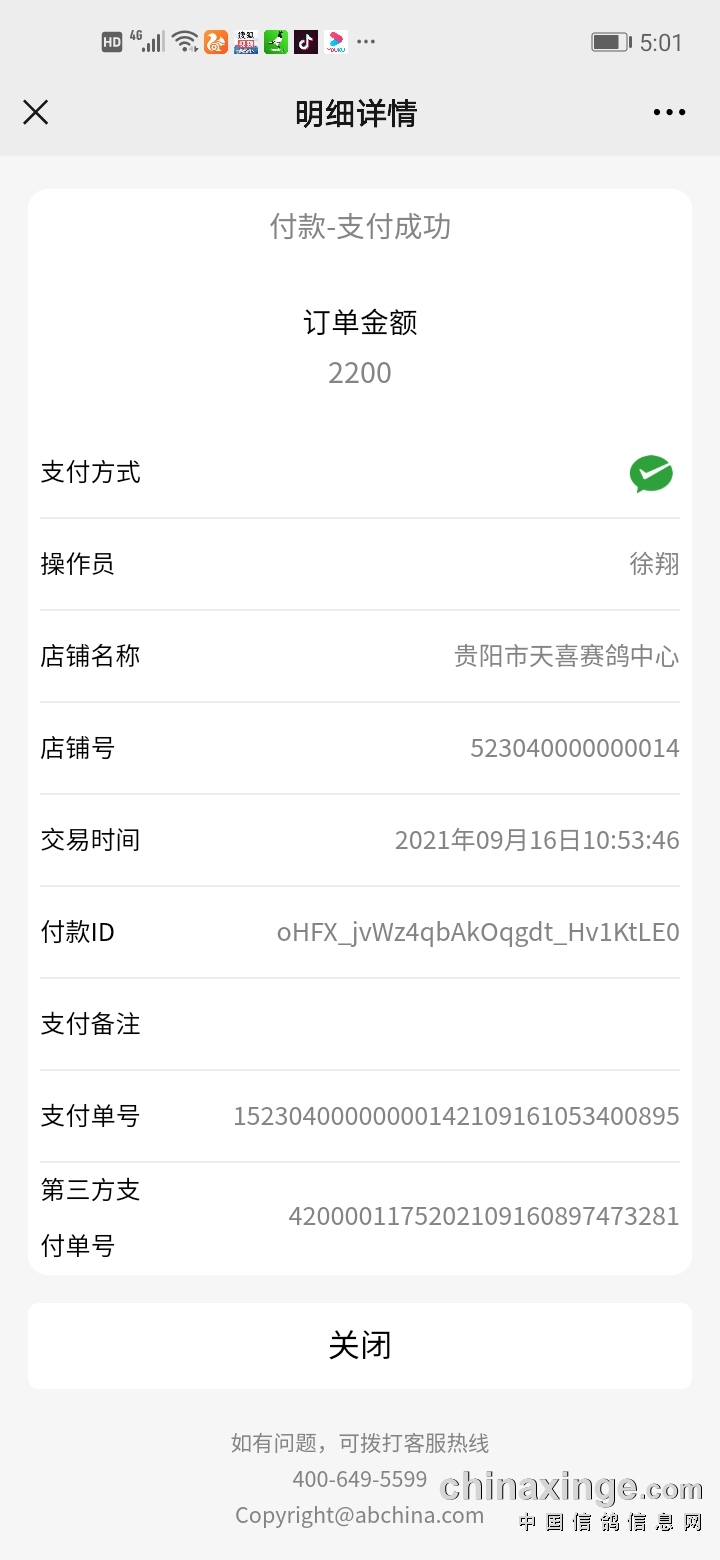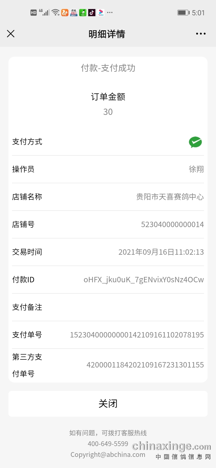 2021/9/17 17:15:19 贵州贵阳天喜赛鸽中心