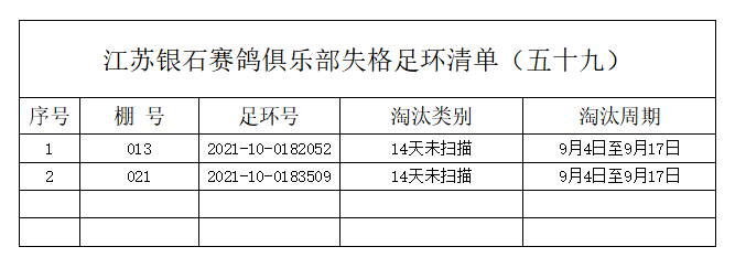 江苏银石赛鸽俱乐部失格足环清单(五十九)