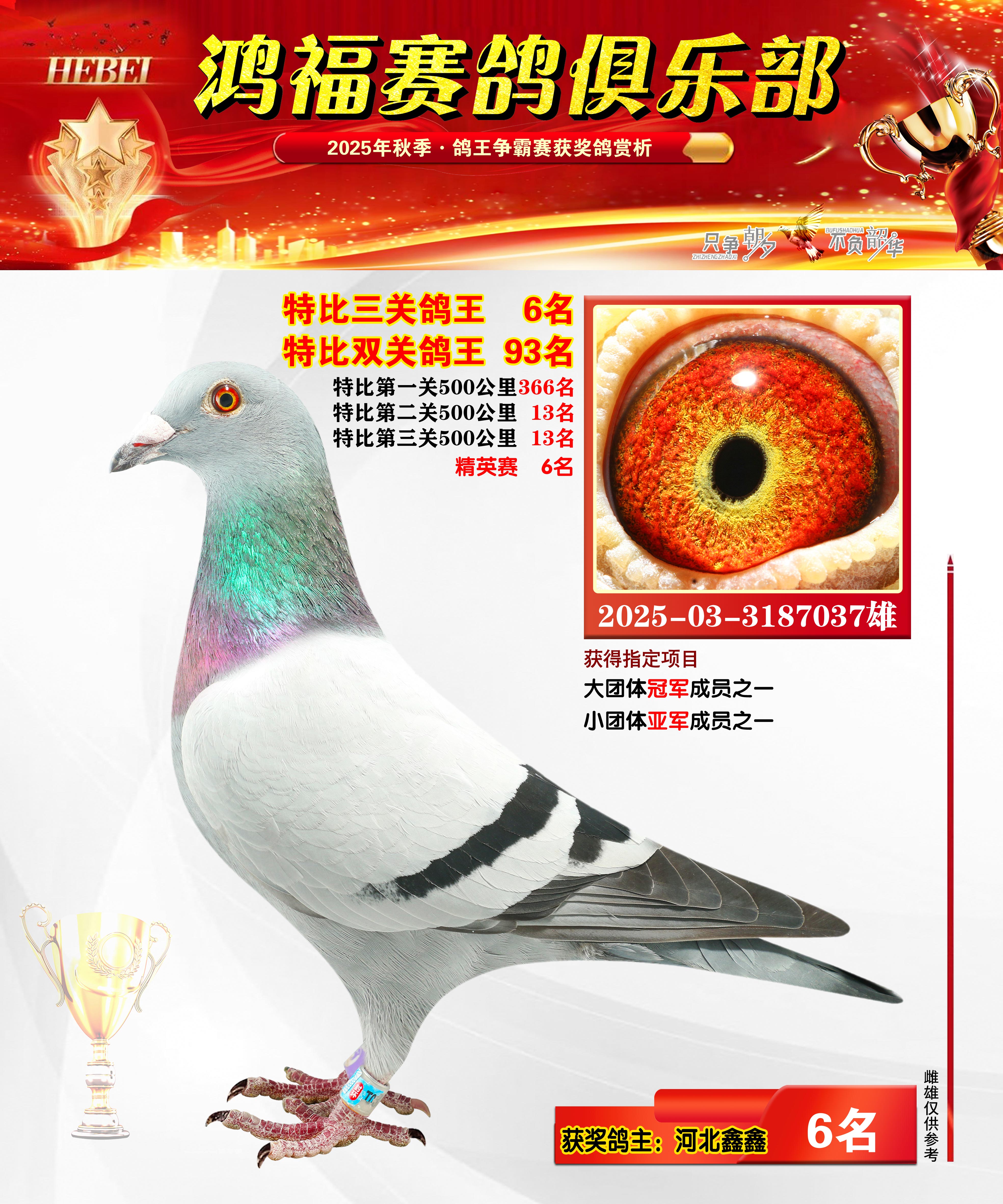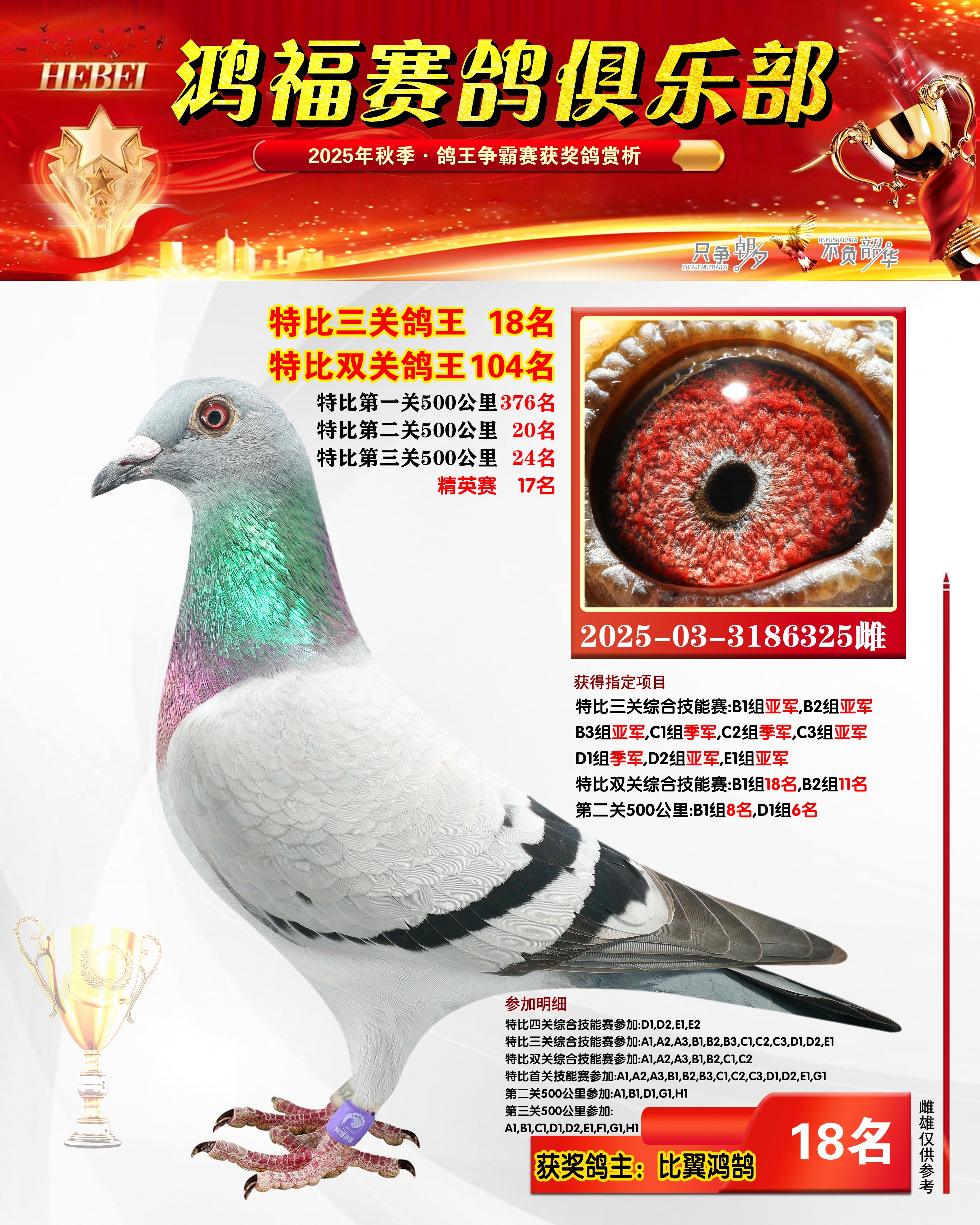 2025年秋季获奖鸽1-20名