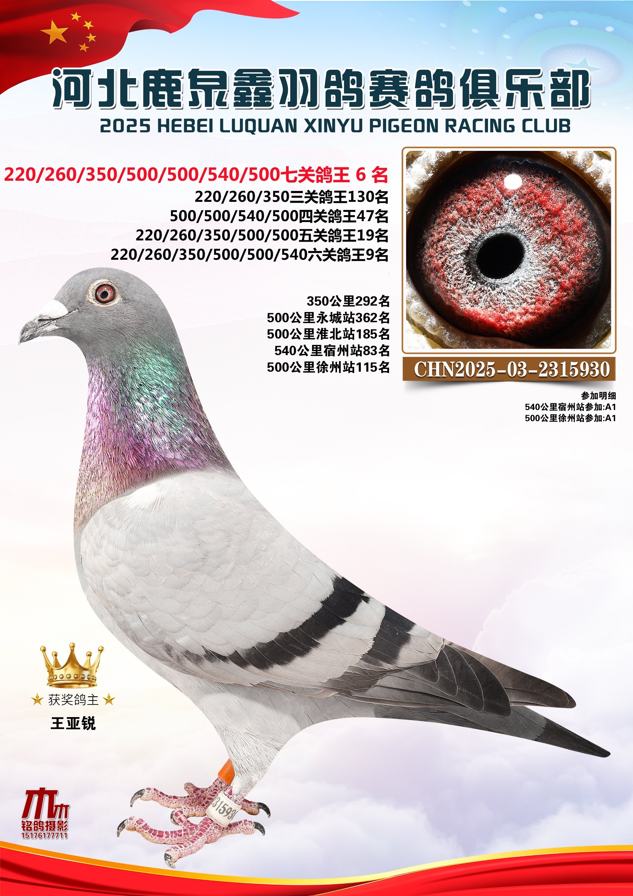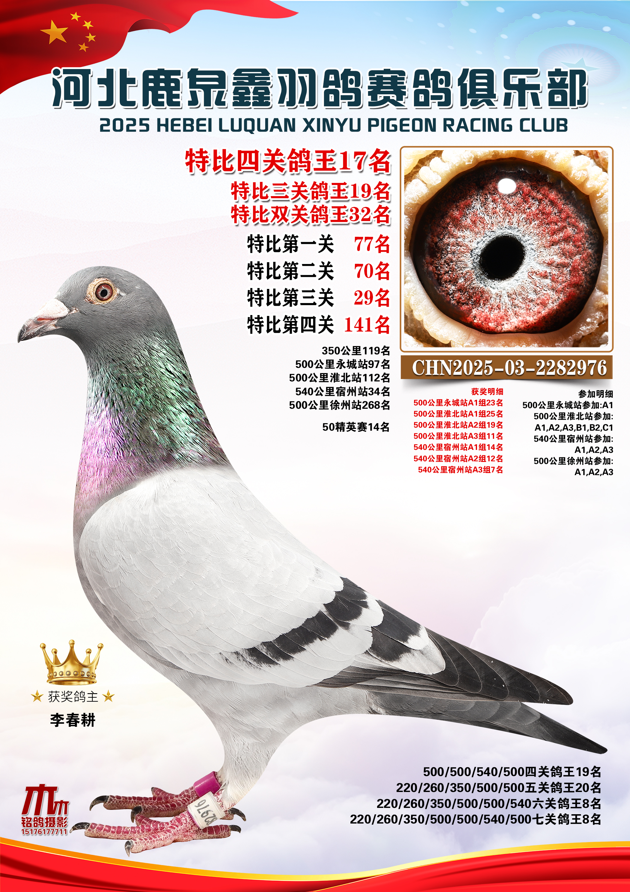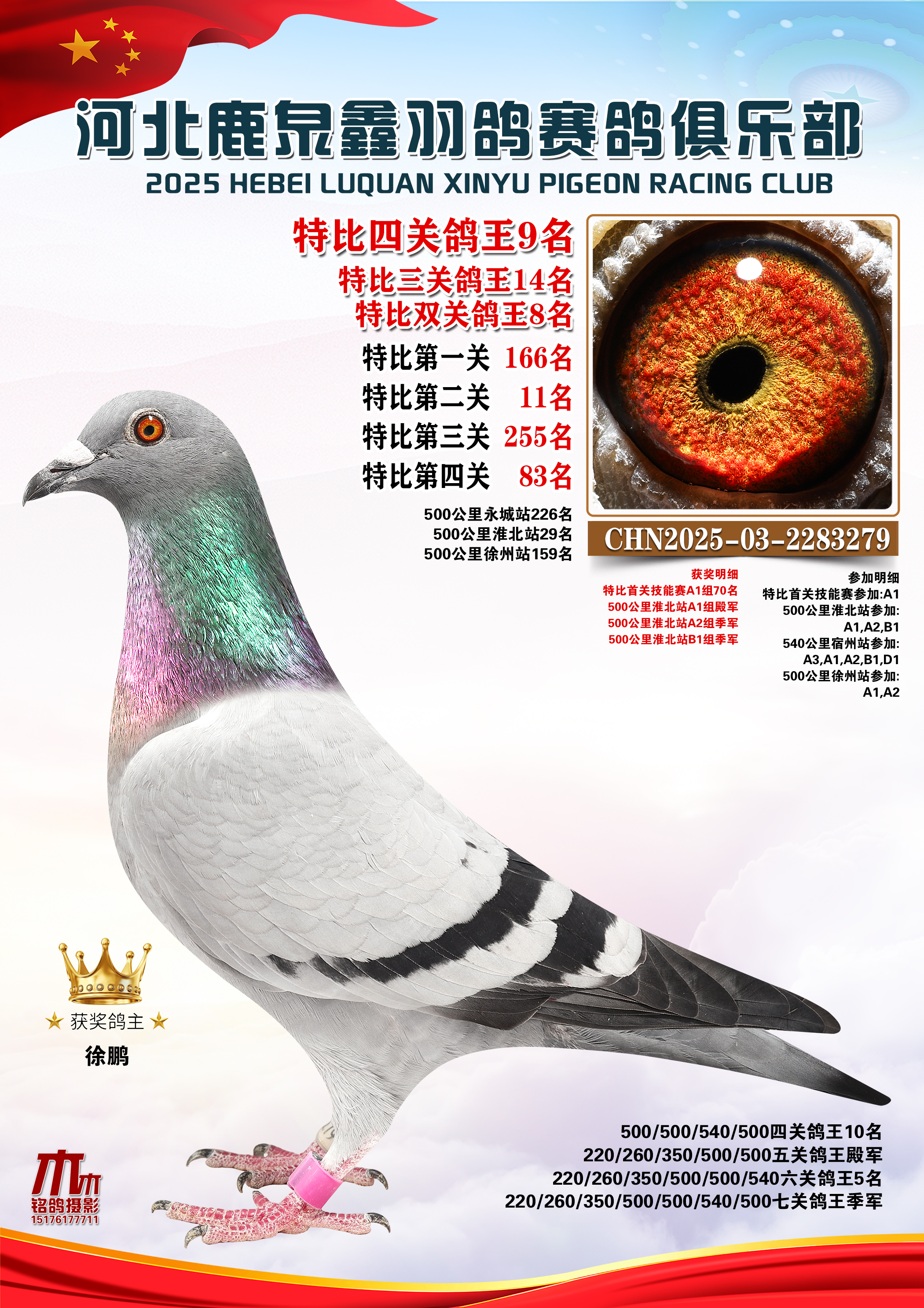 25秋河北鹿泉鑫羽鸽俱乐部年度七关总鸽王1-10名