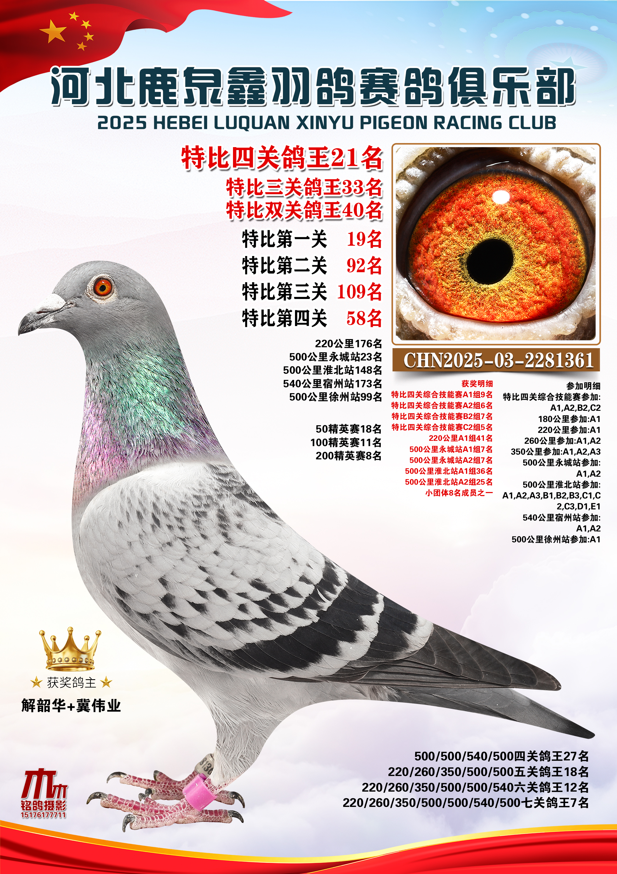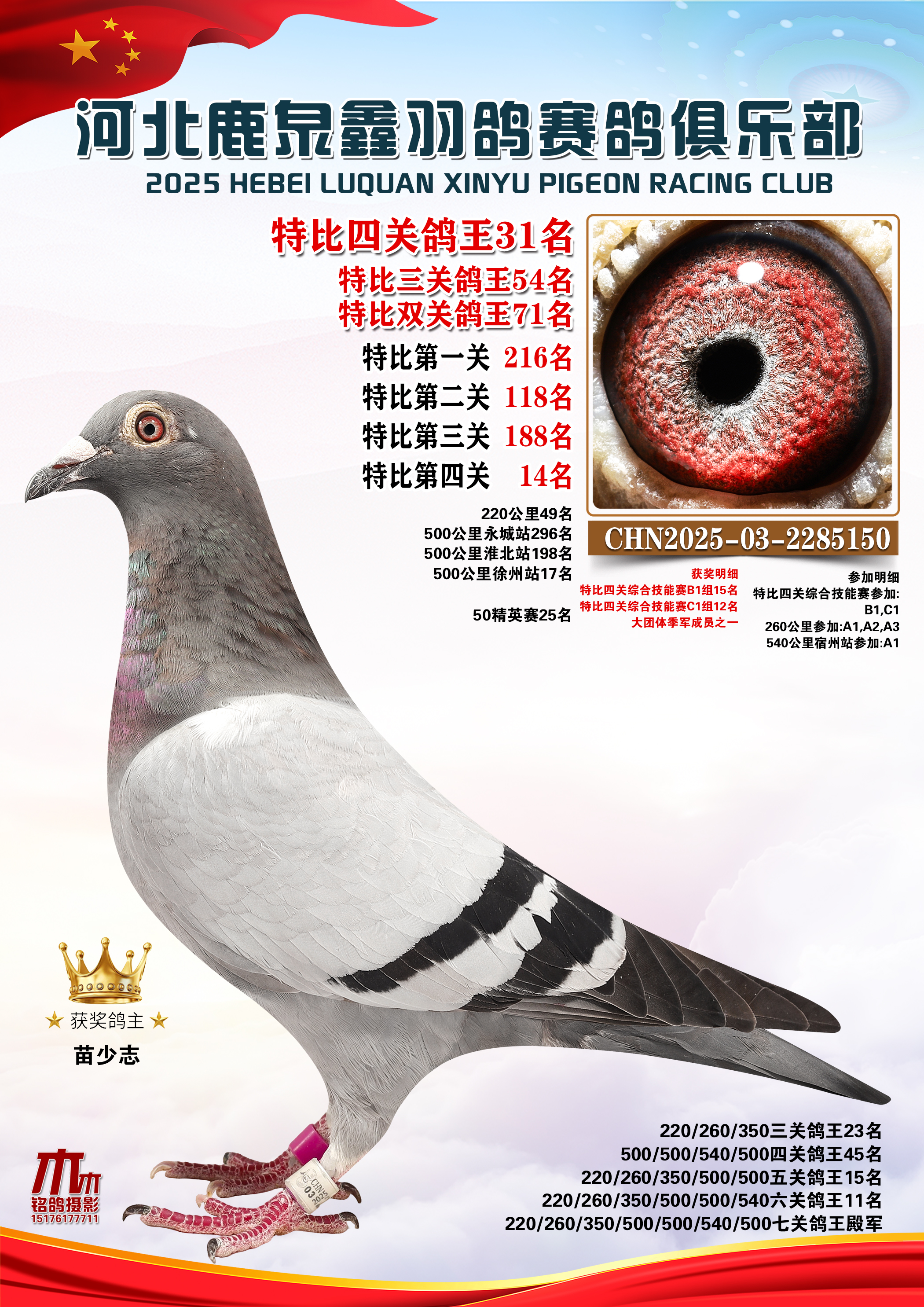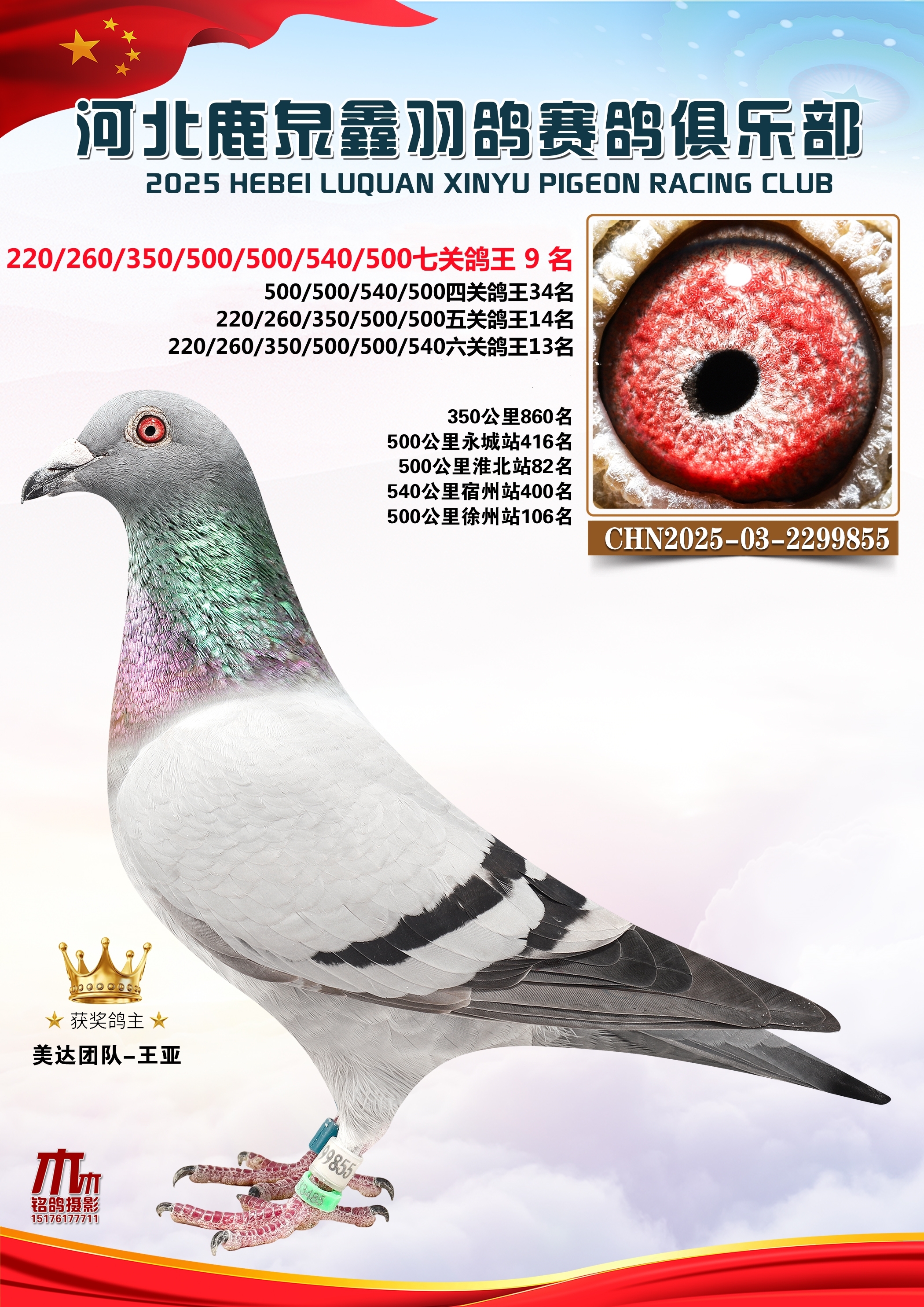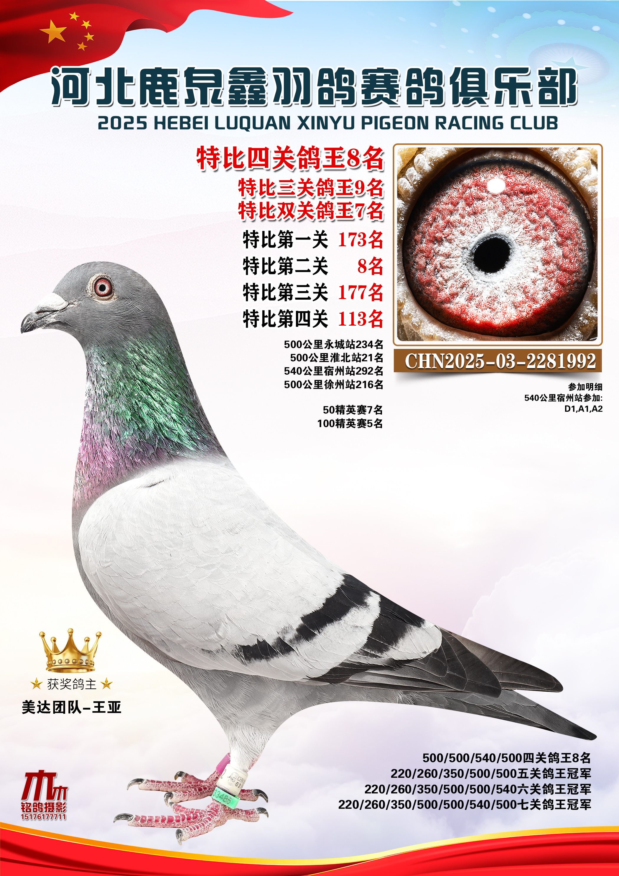 25秋河北鹿泉鑫羽鸽俱乐部年度七关总鸽王1-10名