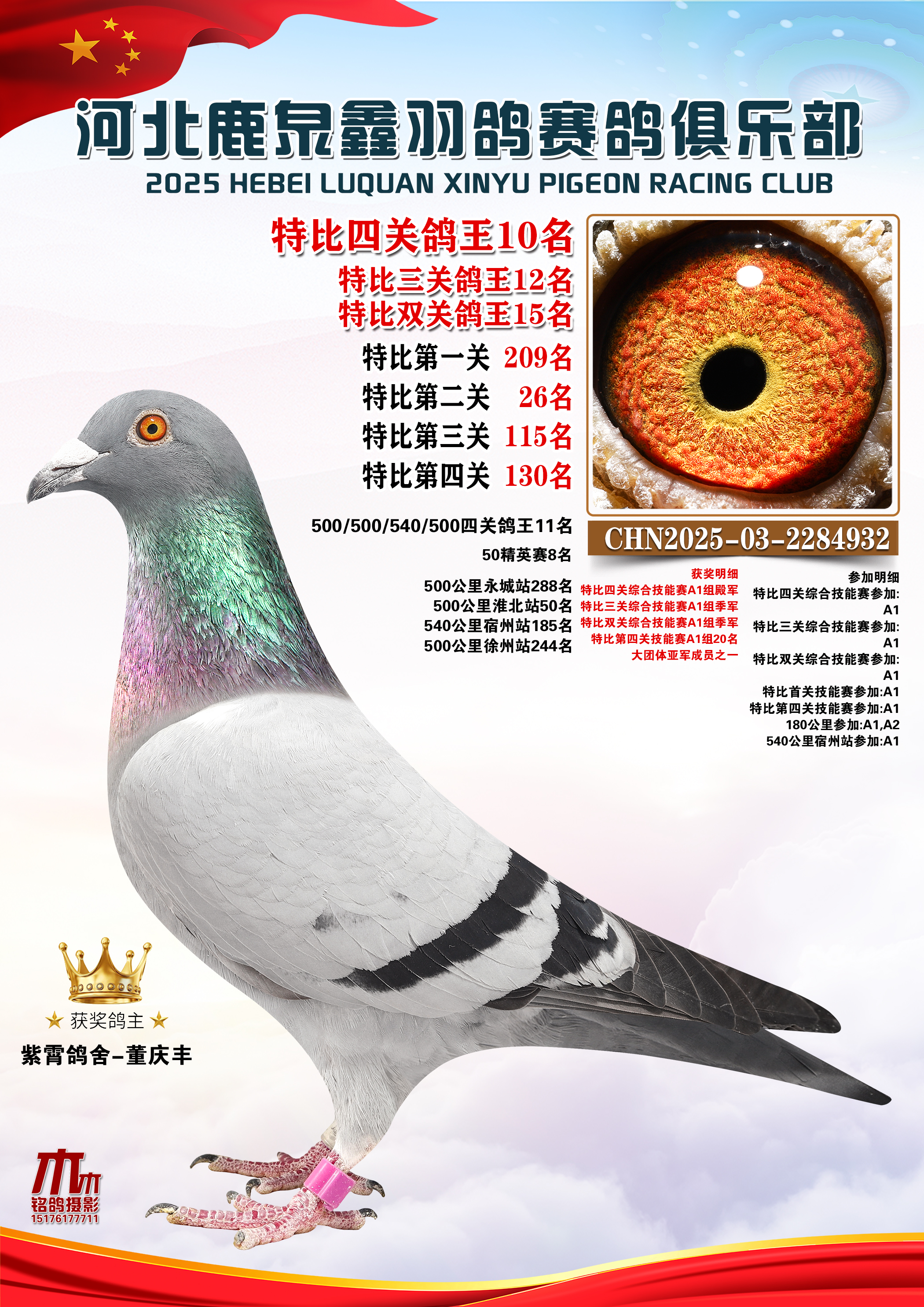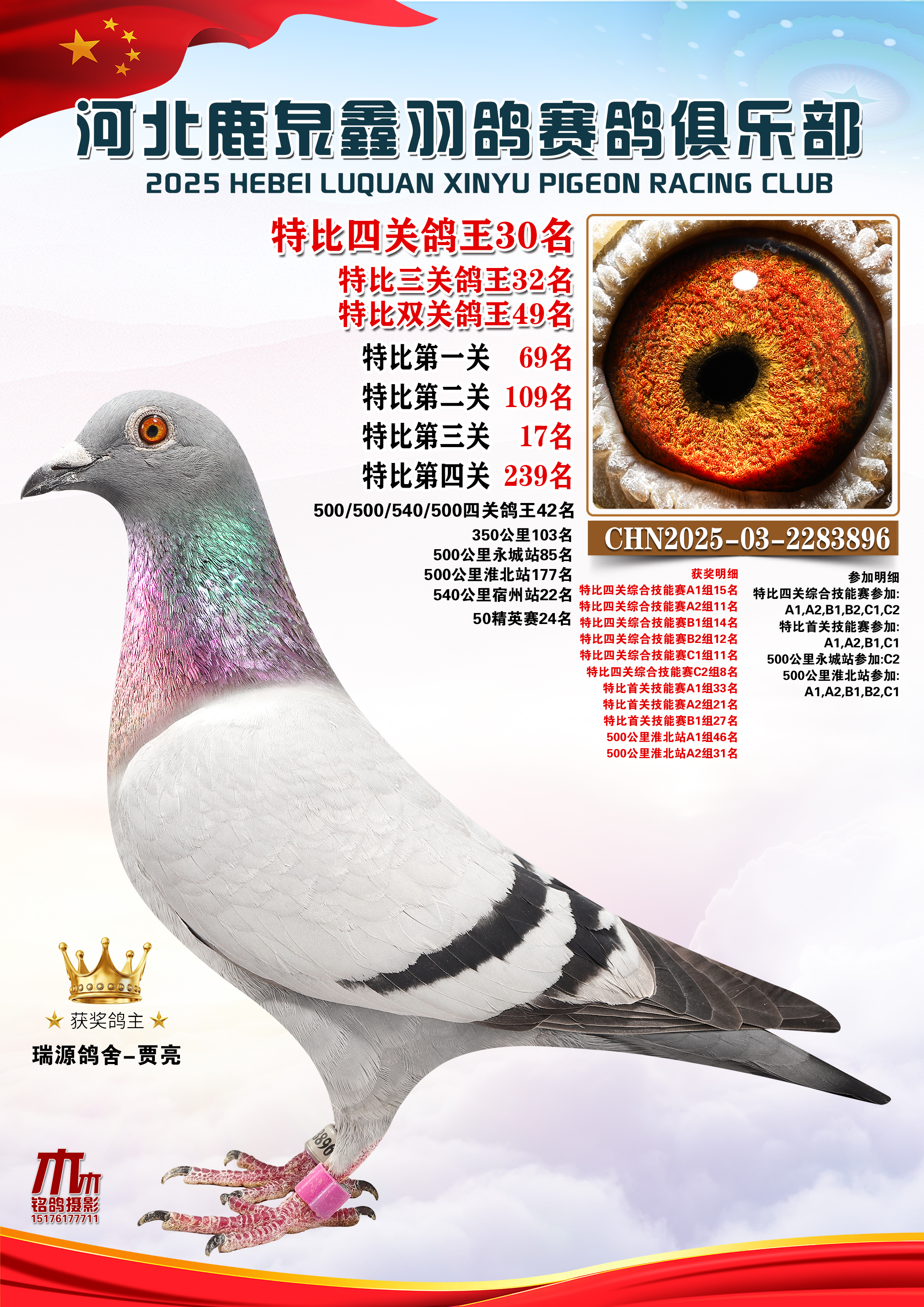 25秋河北鹿泉鑫羽鸽俱乐部特比鸽王1-50名