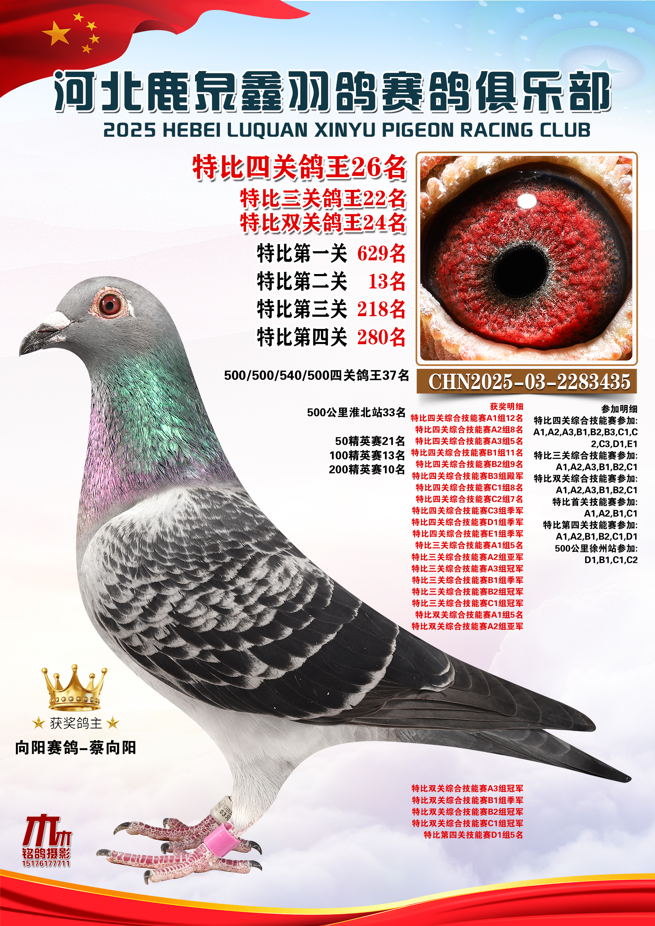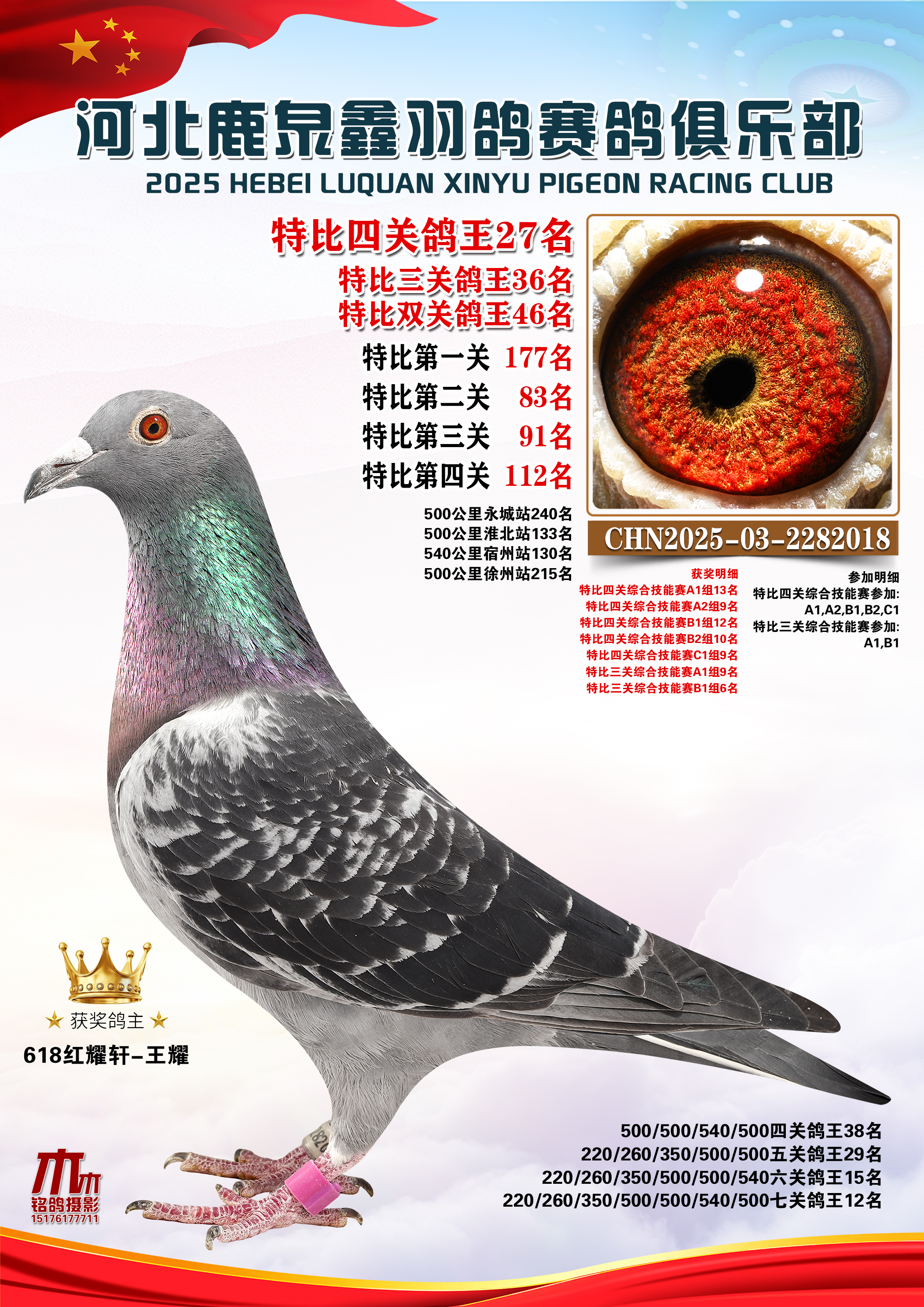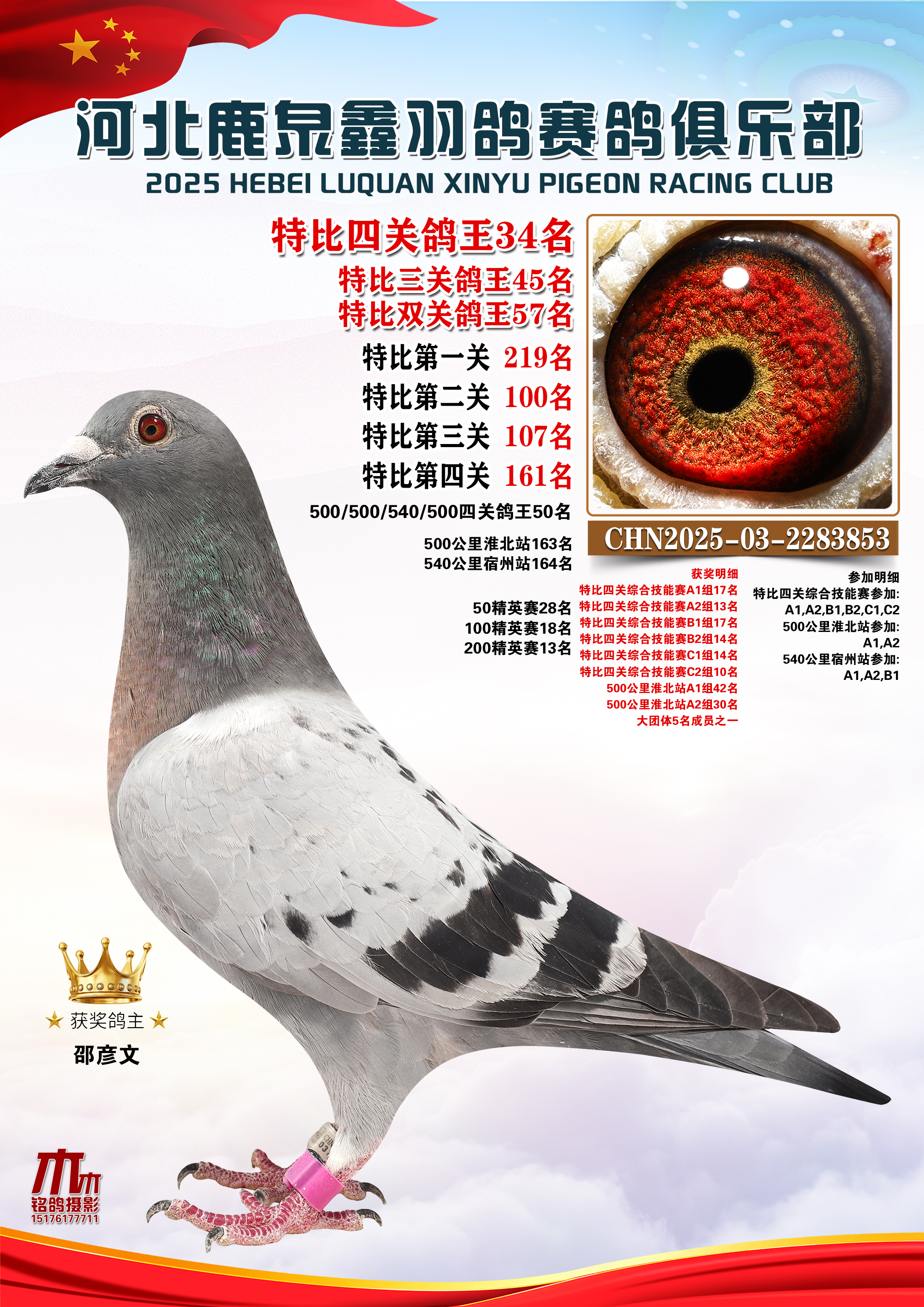 • 25秋河北鹿泉鑫羽鸽俱乐部特比鸽王151-200名 (2025/12/1 8:13:09)