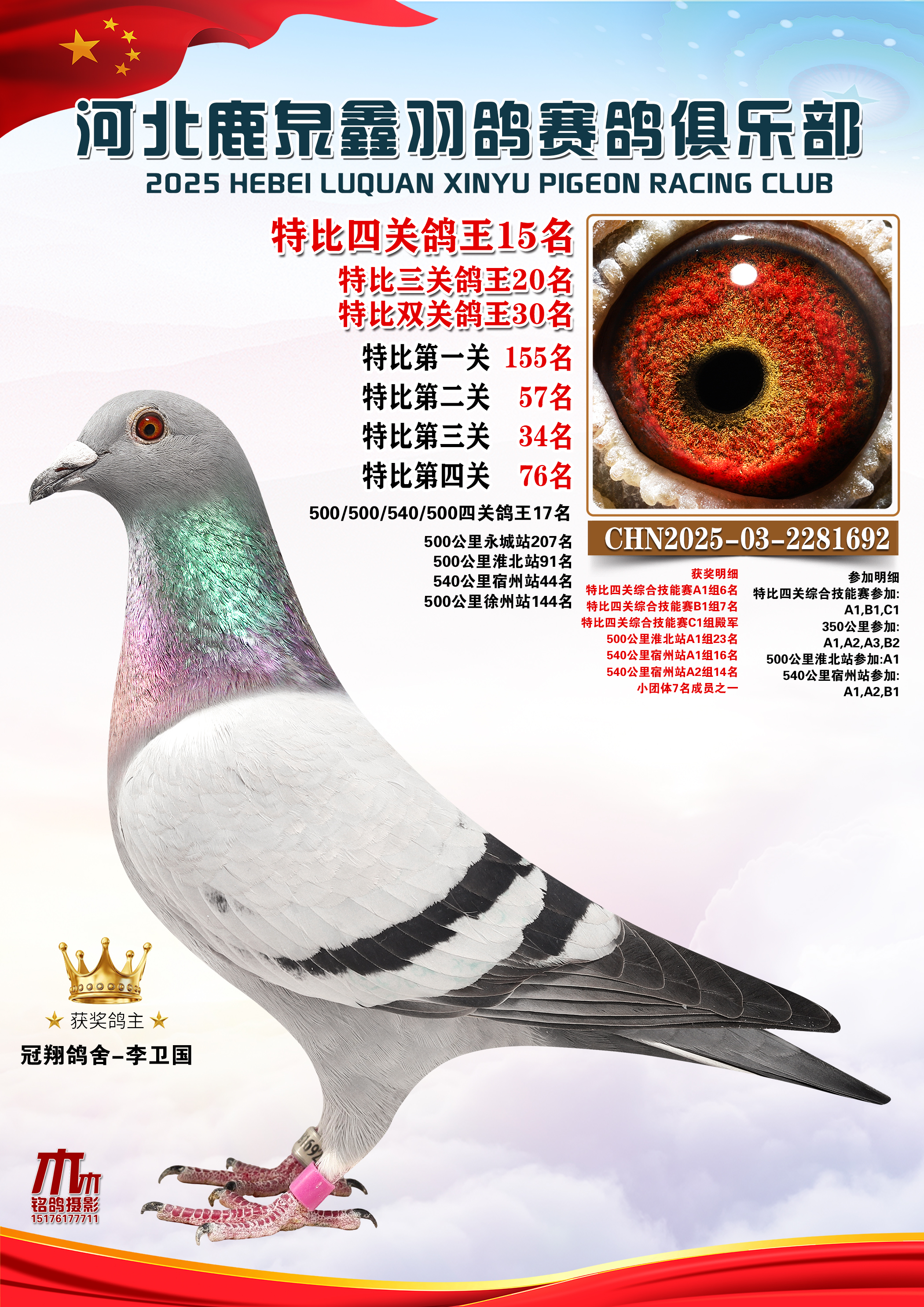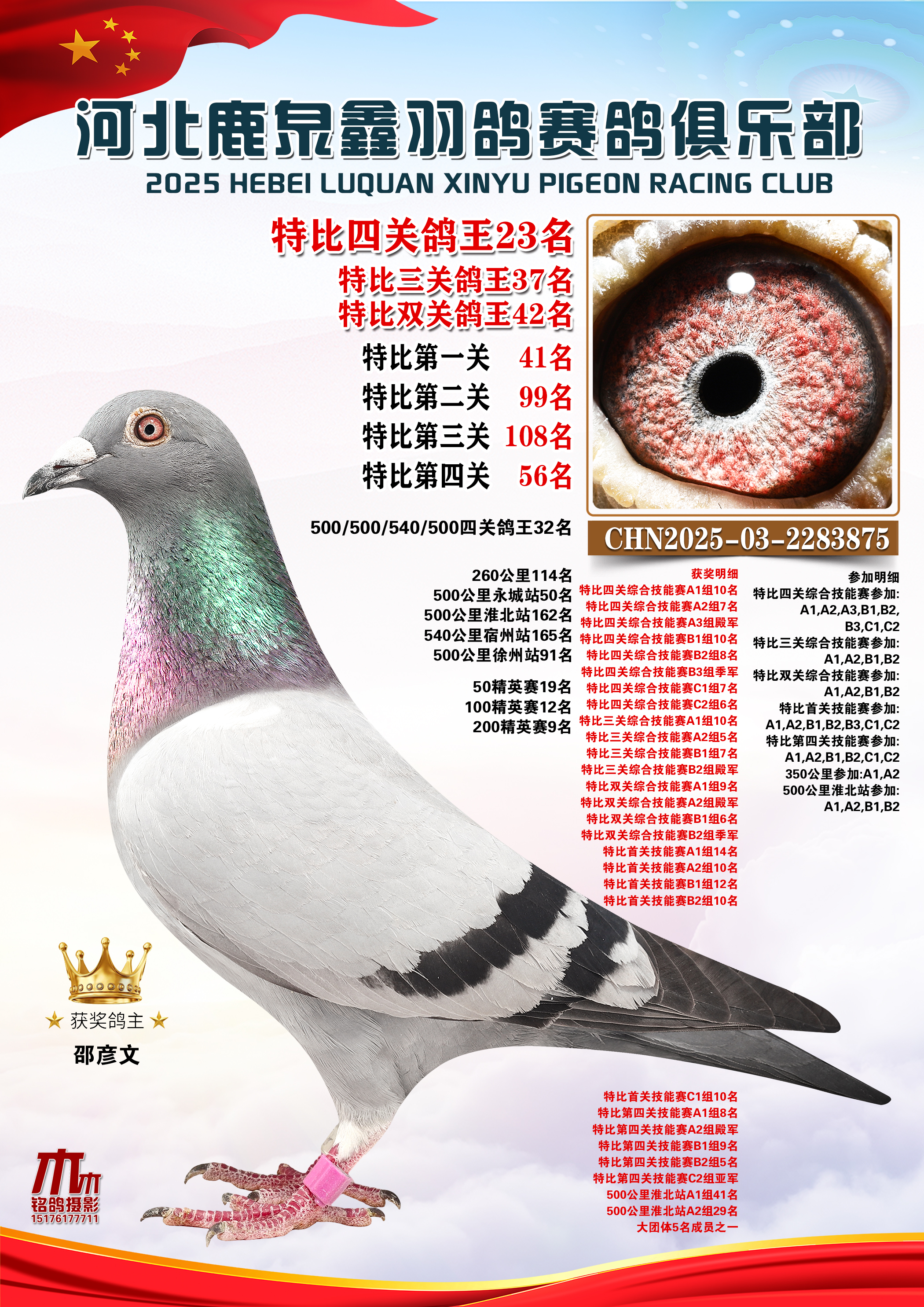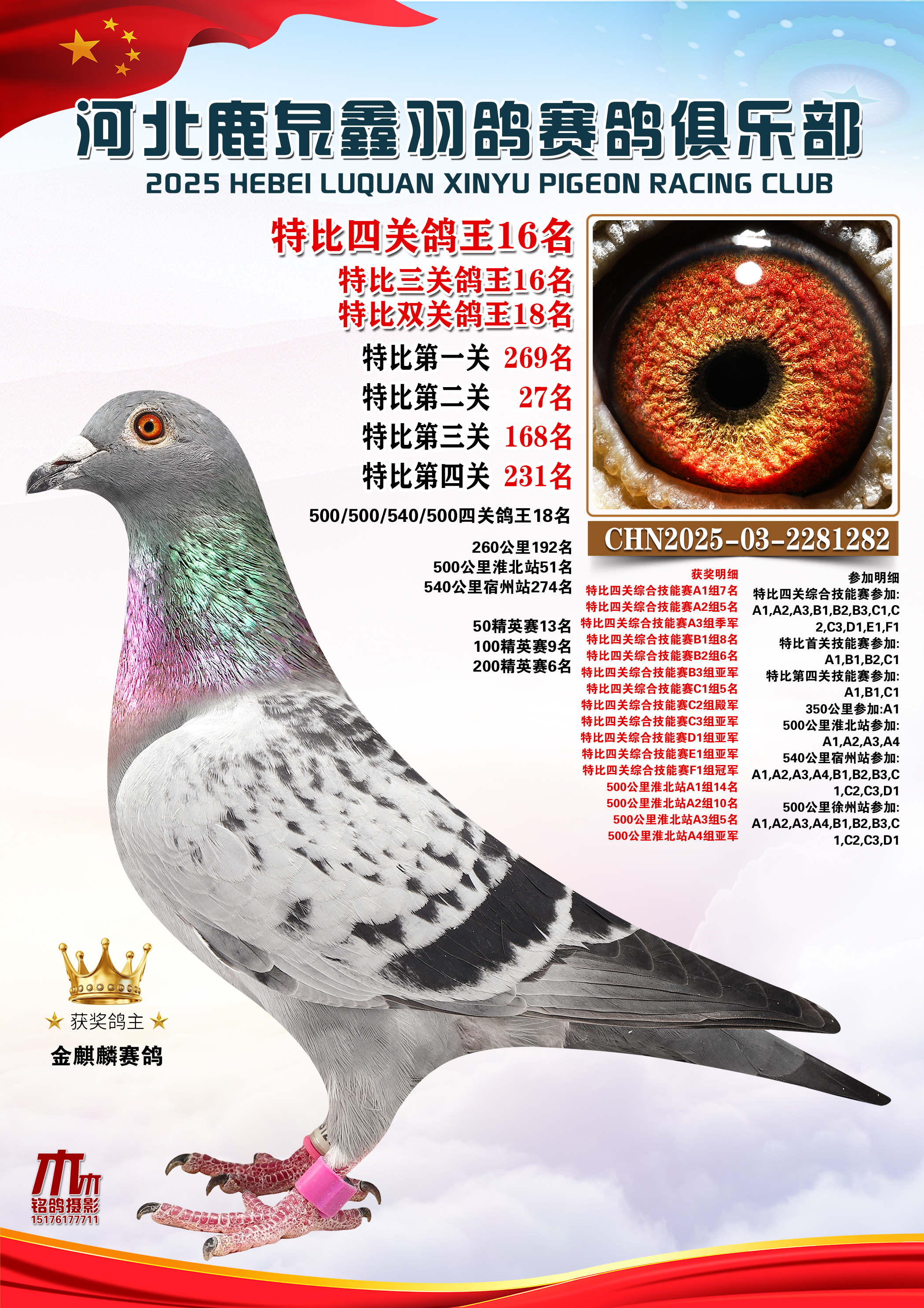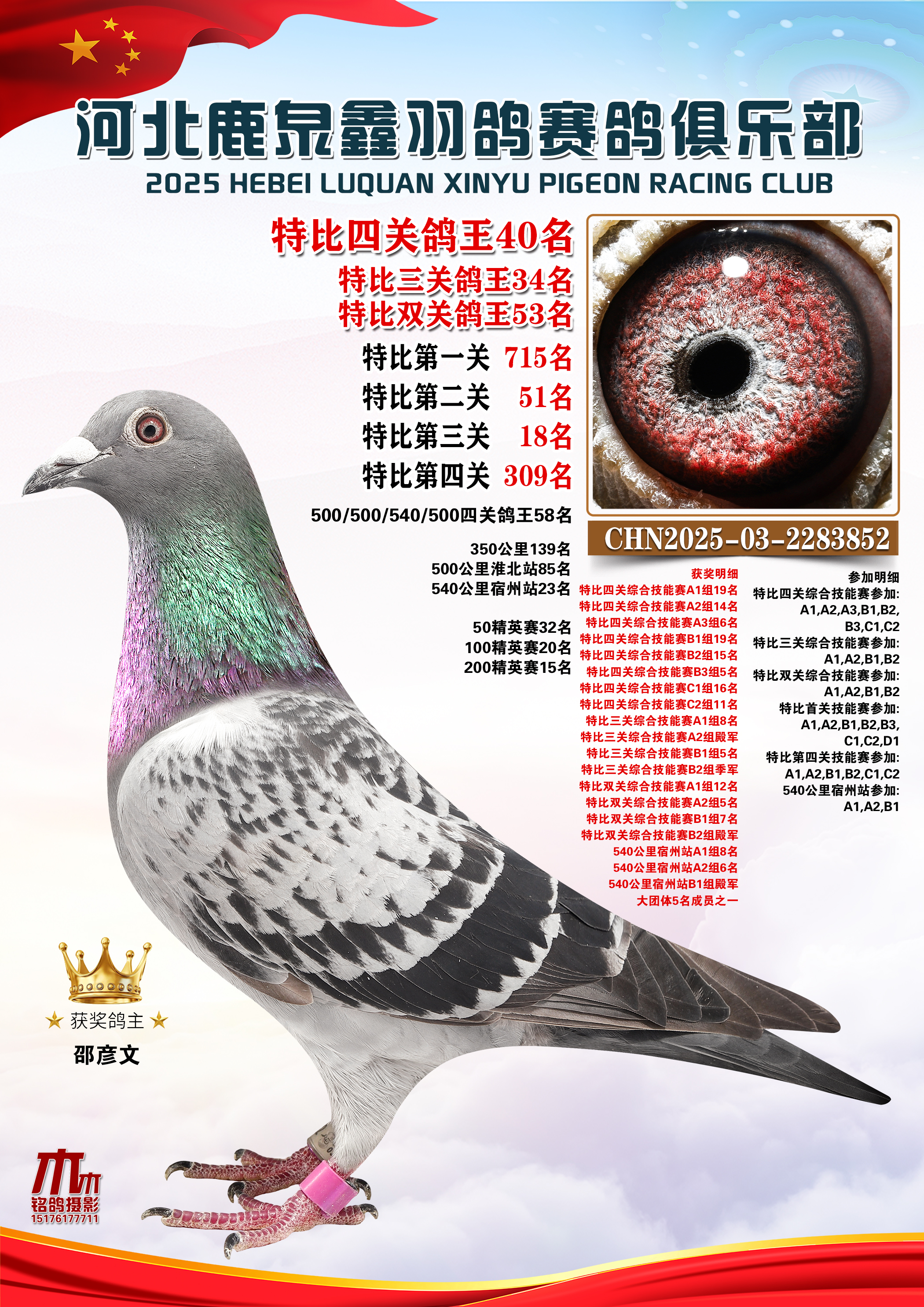 • 25秋河北鹿泉鑫羽鸽俱乐部特比鸽王151-200名 (2025/12/1 8:13:09)