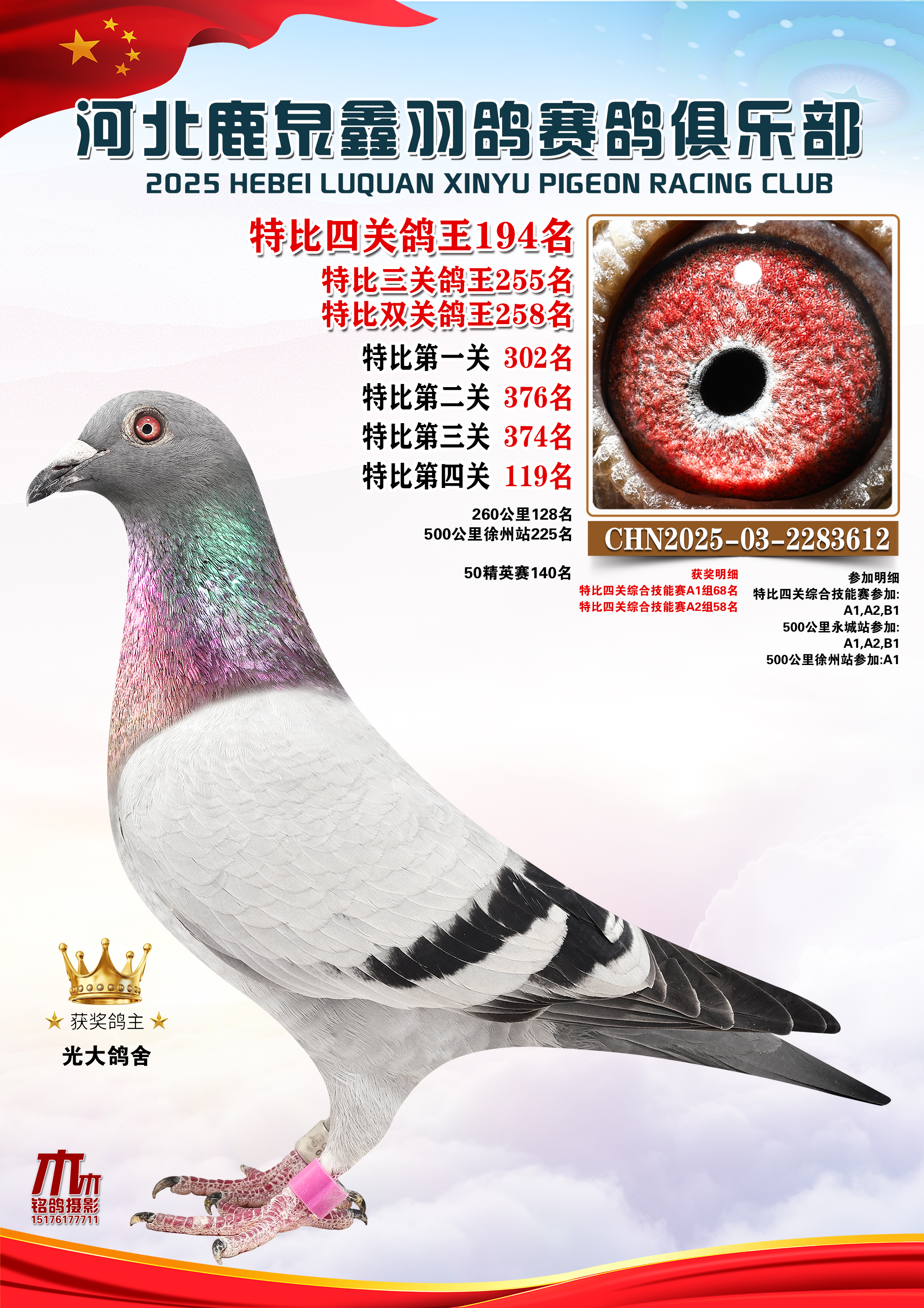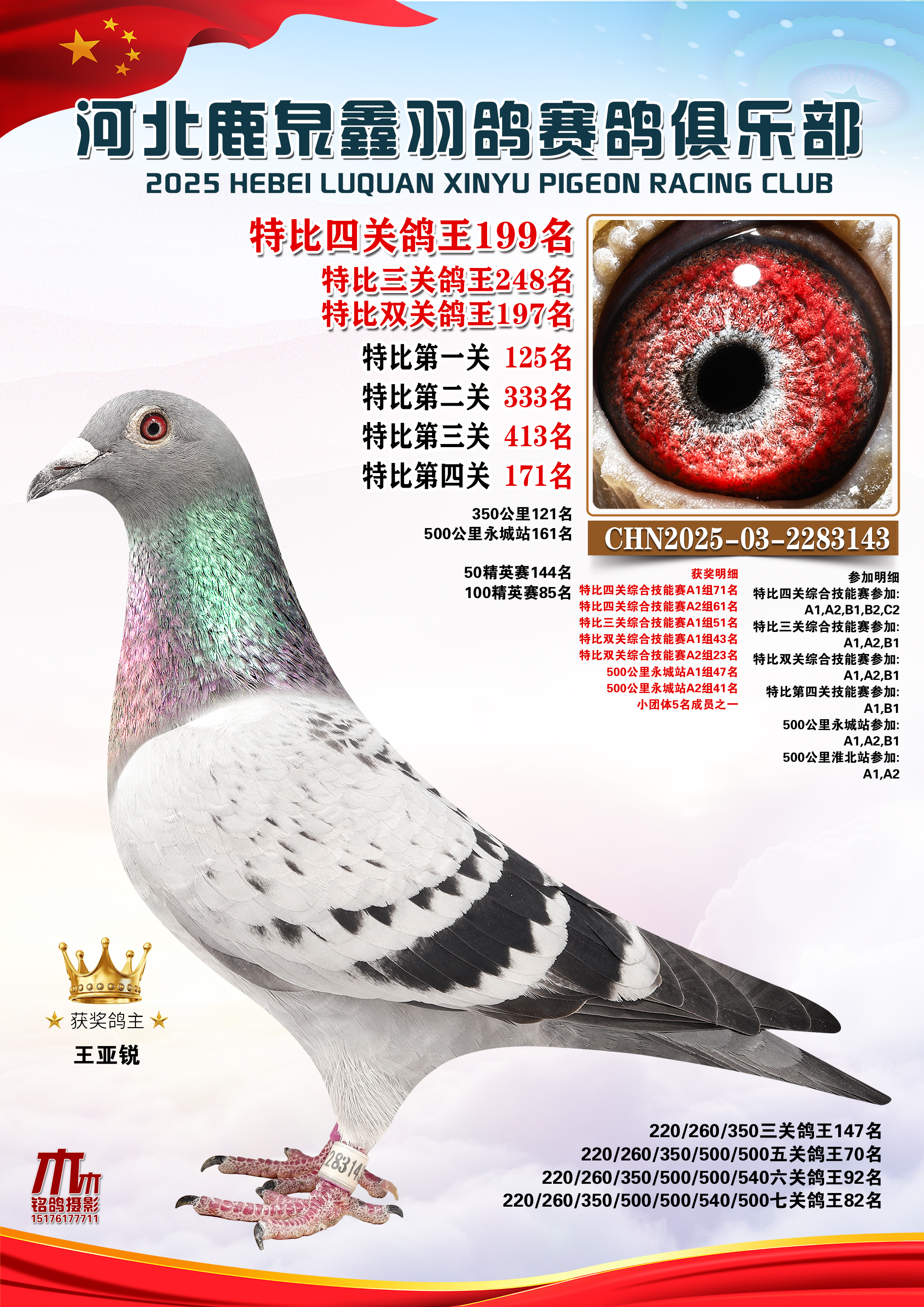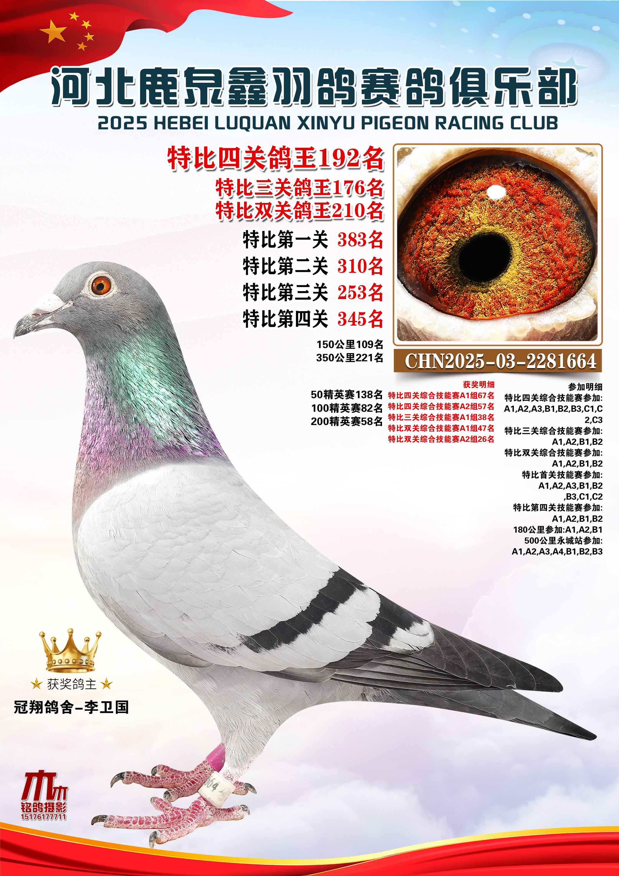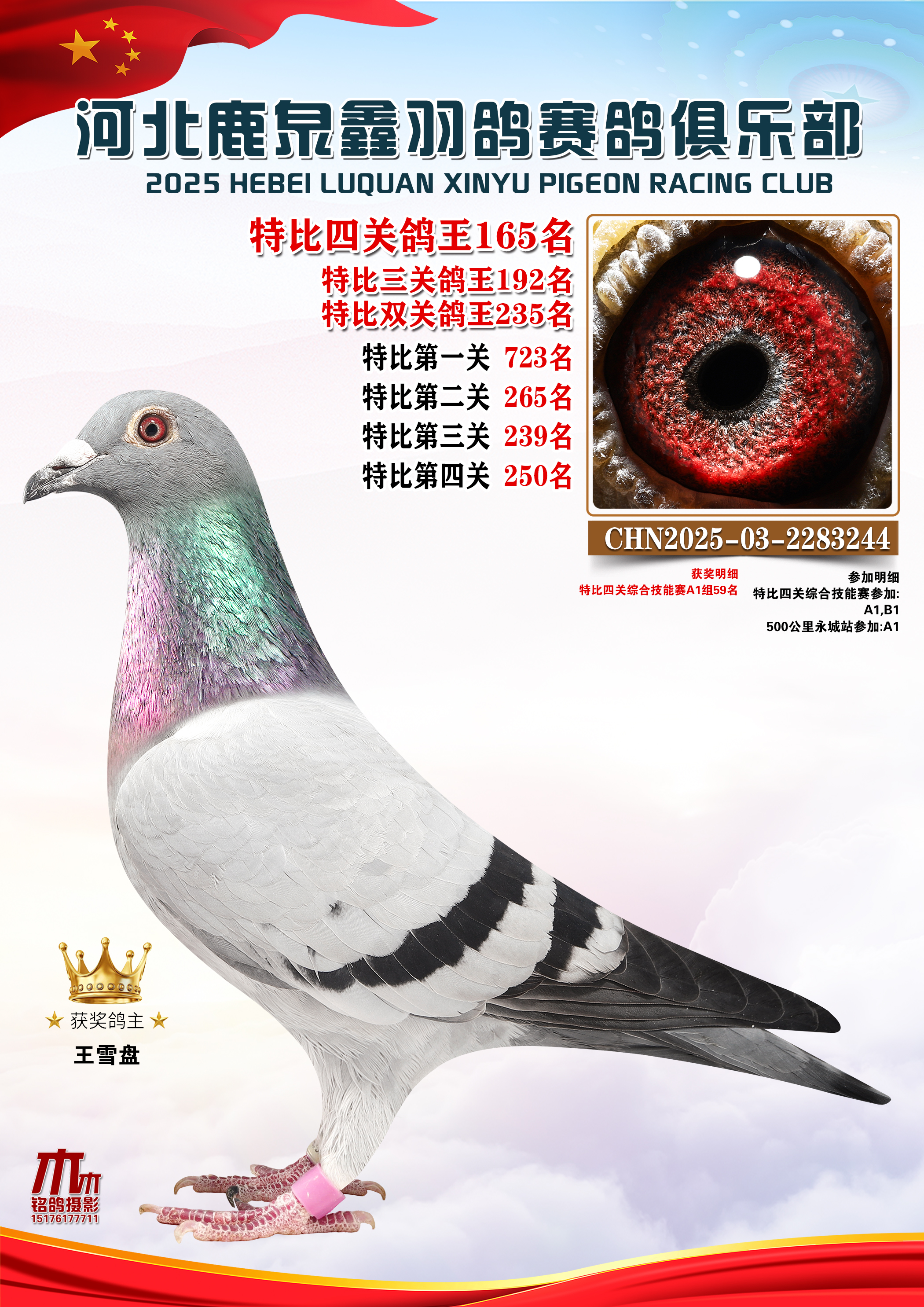 25秋河北鹿泉鑫羽鸽俱乐部特比鸽王151-200名