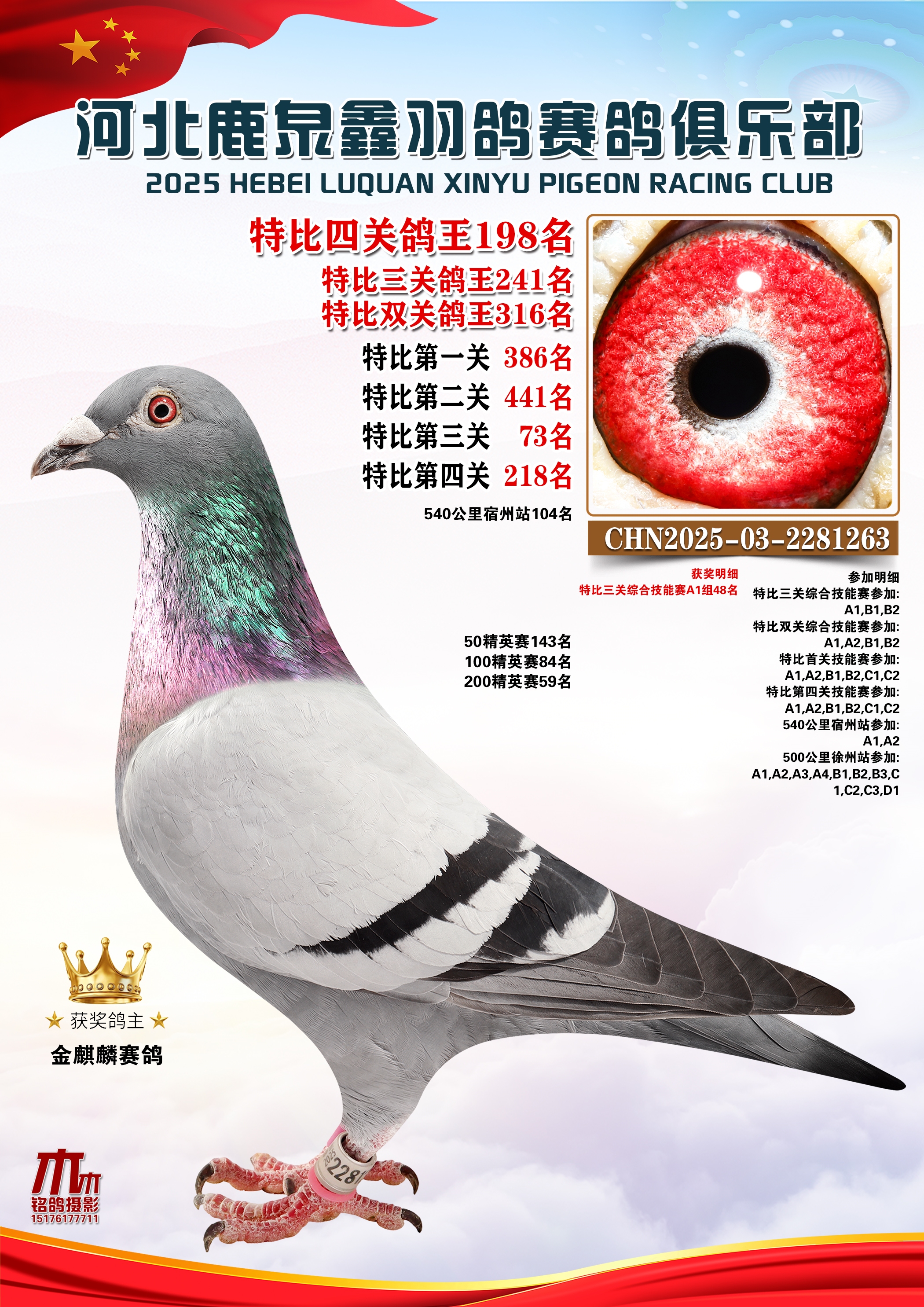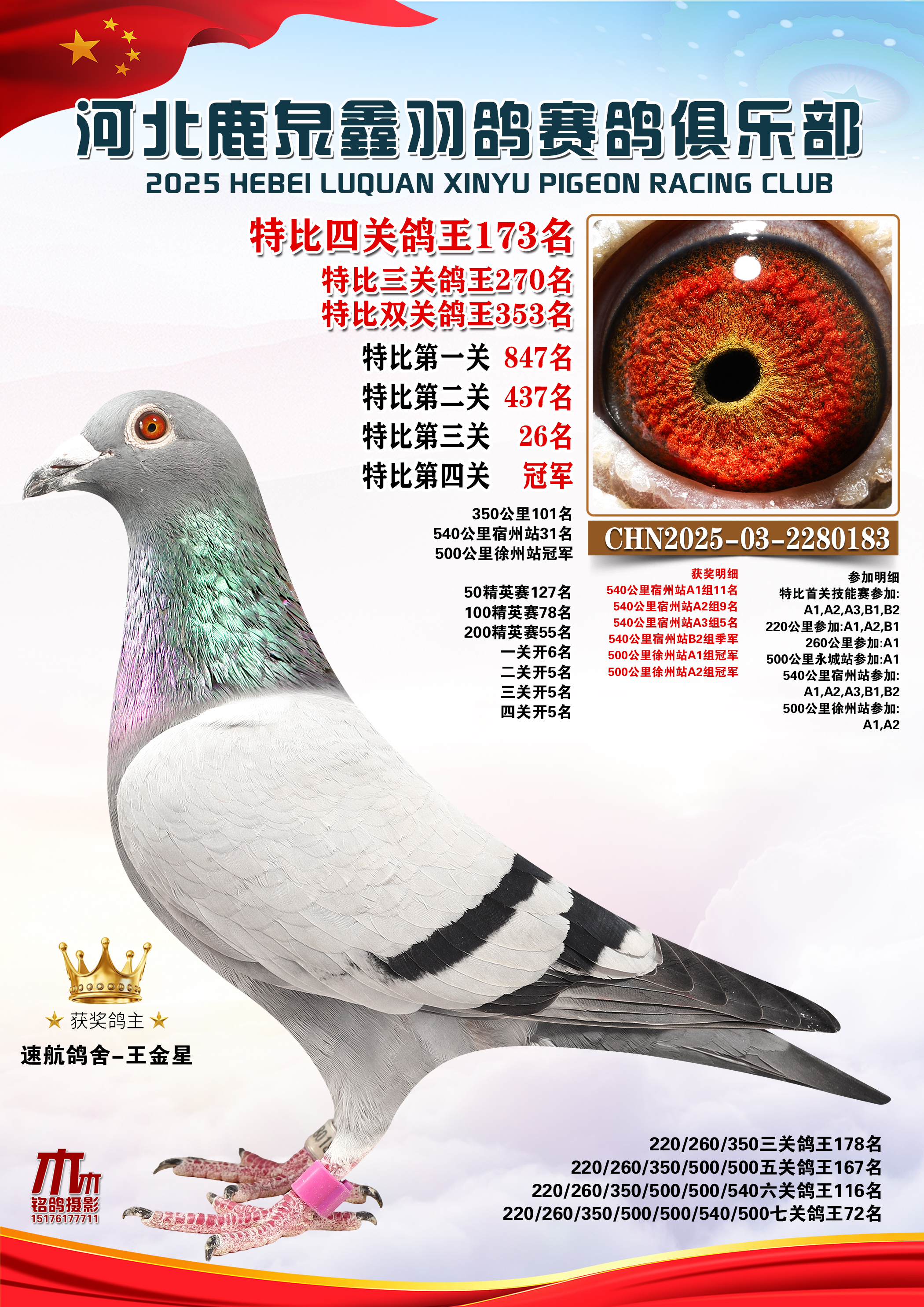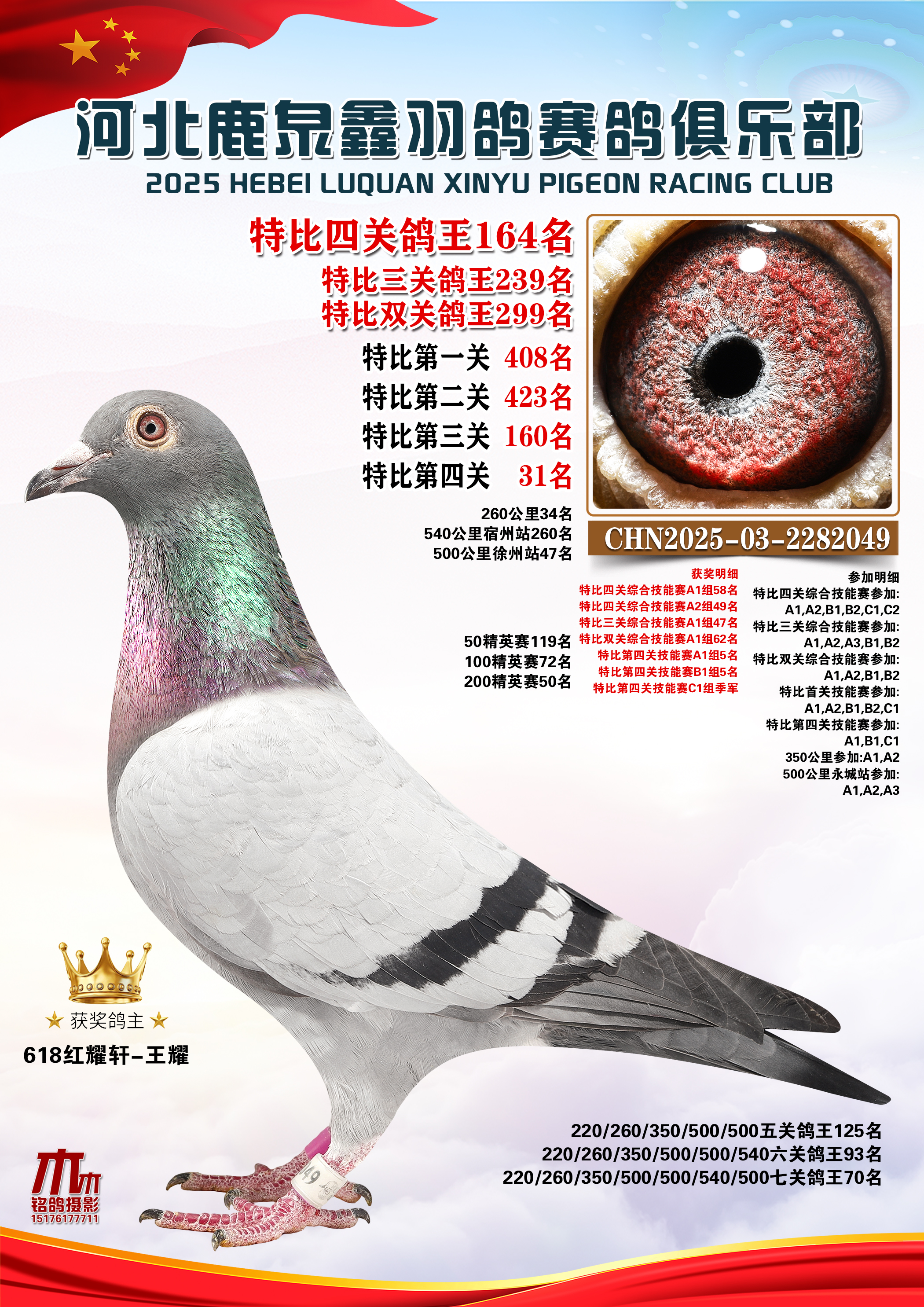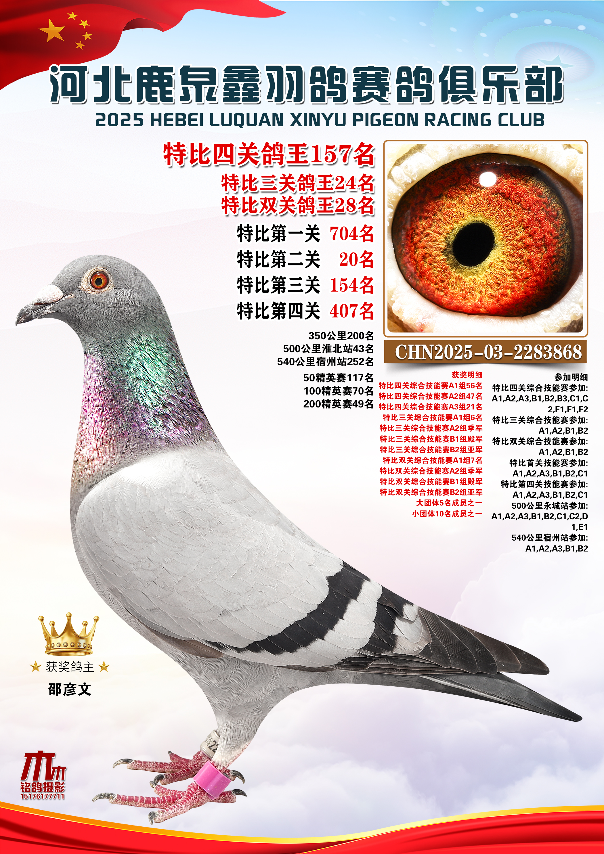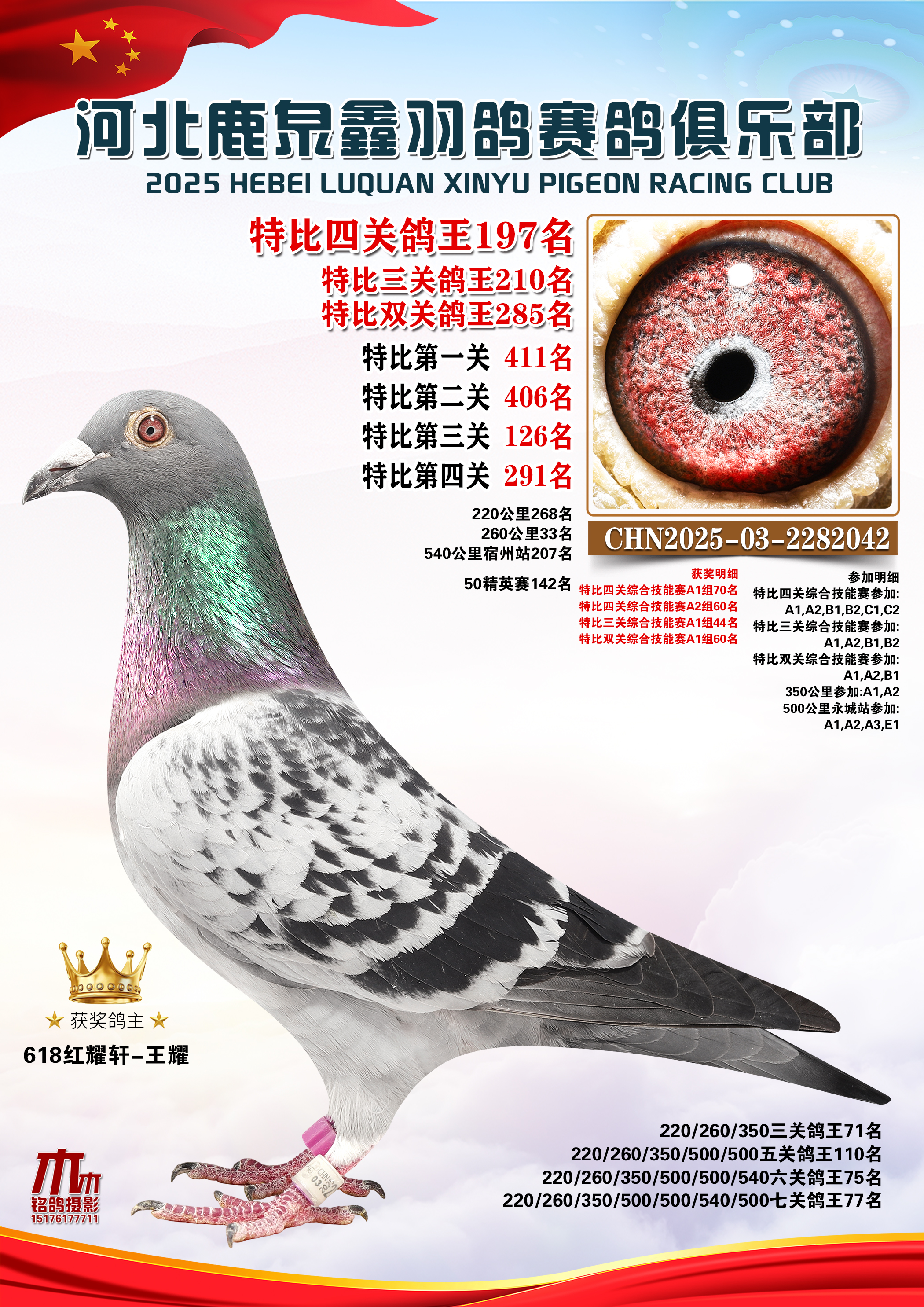 25秋河北鹿泉鑫羽鸽俱乐部特比鸽王151-200名