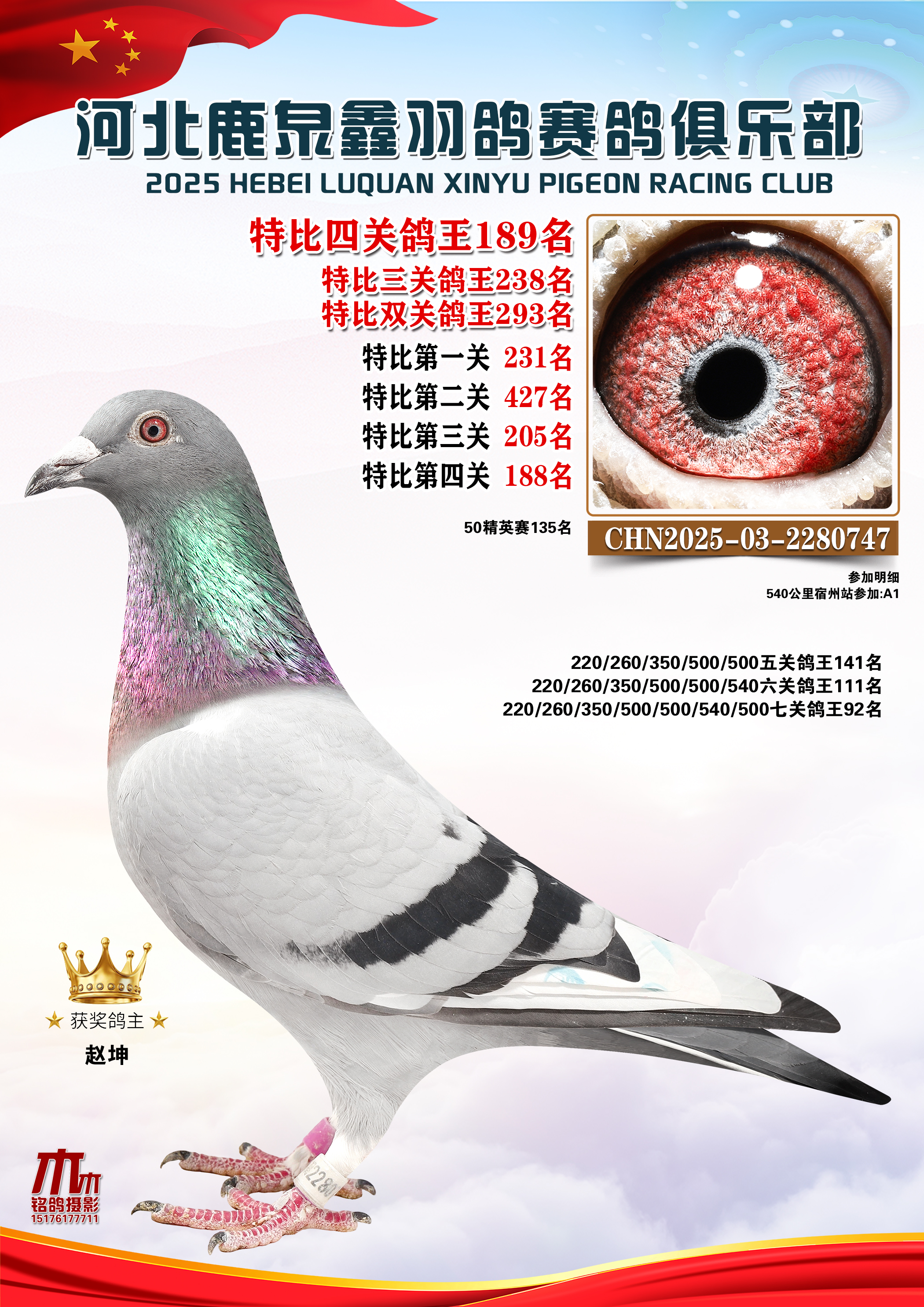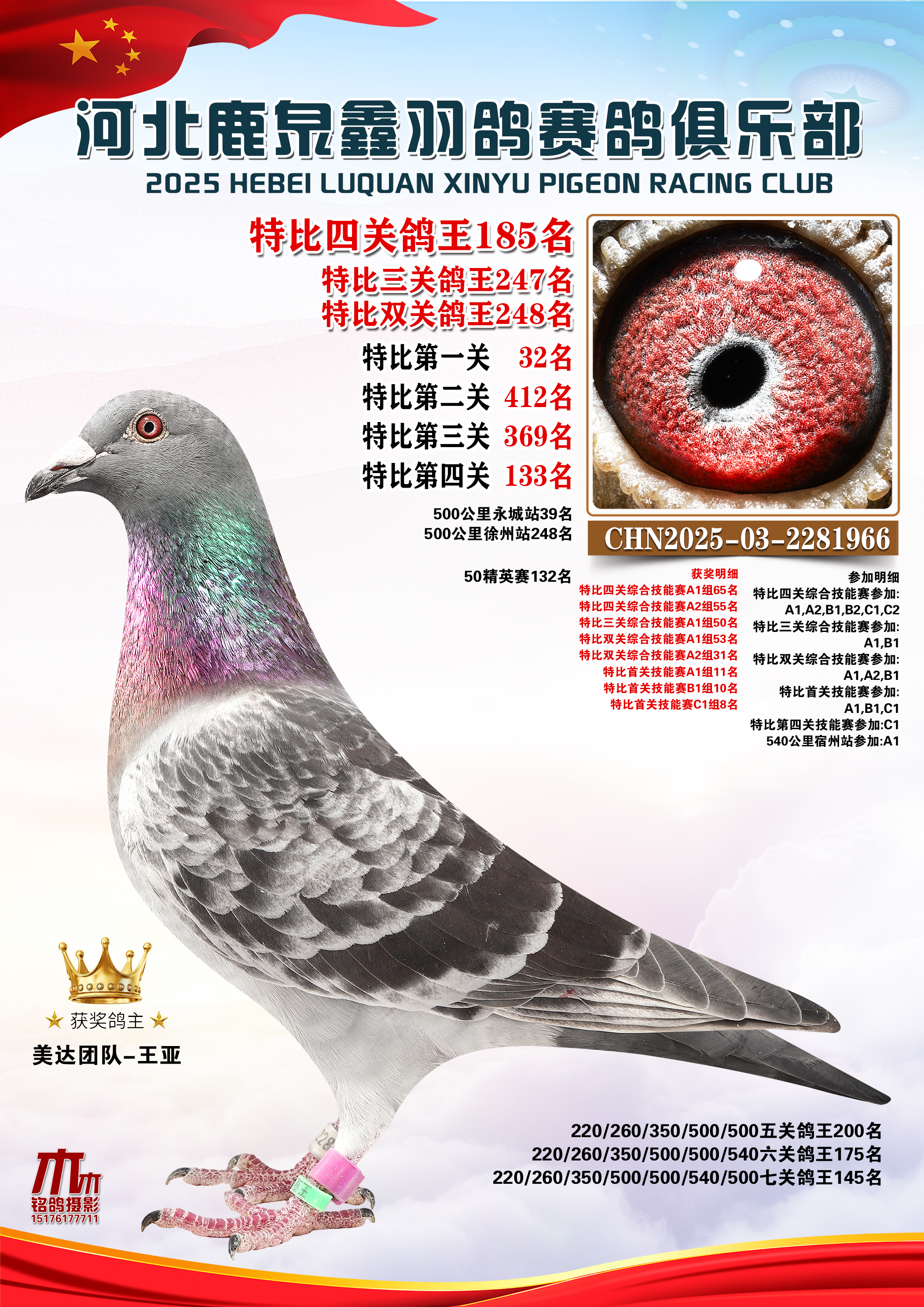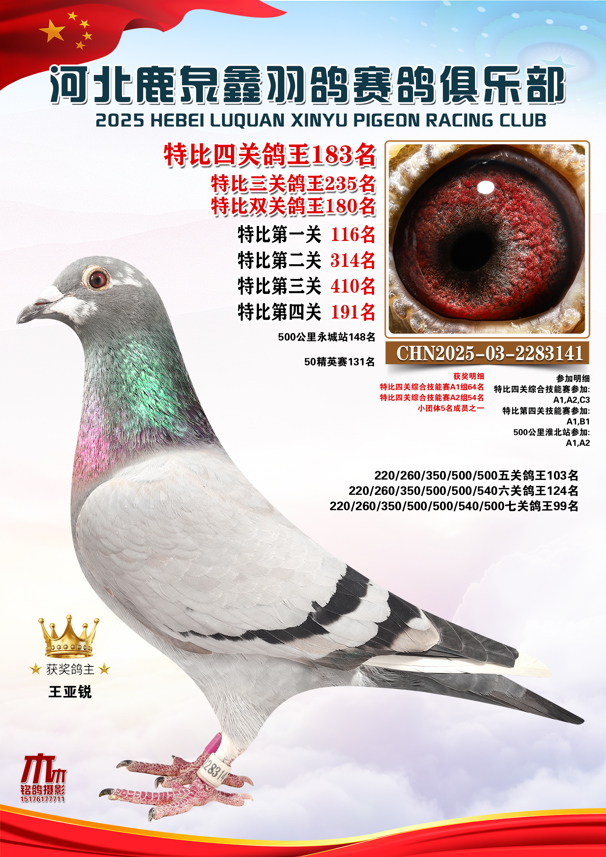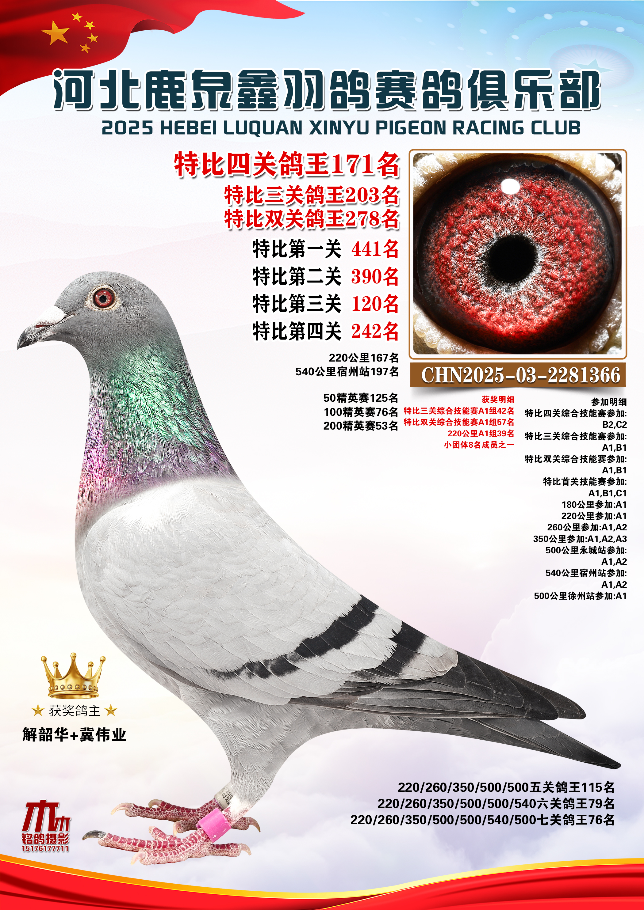 25秋河北鹿泉鑫羽鸽俱乐部特比鸽王151-200名