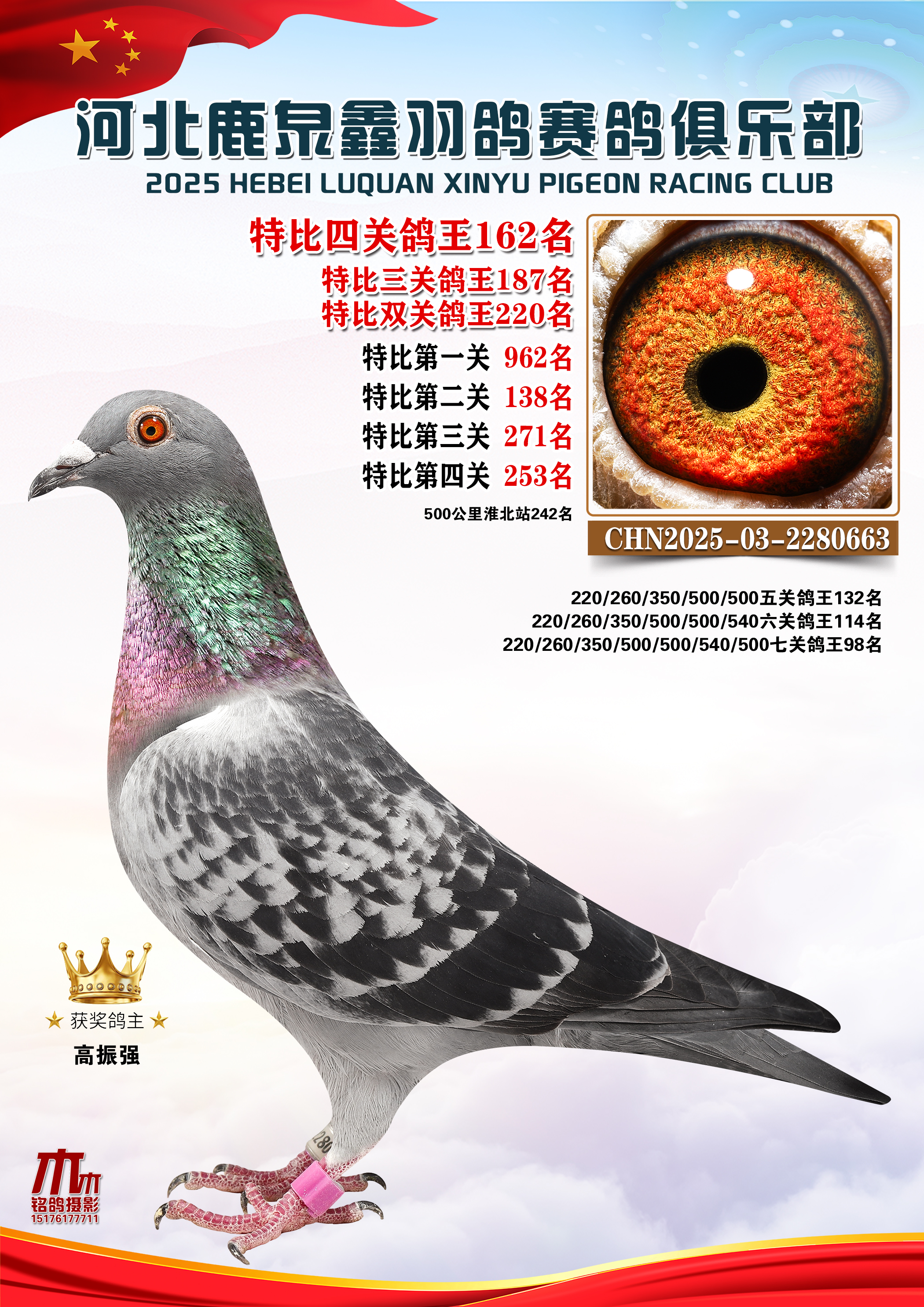 • 25秋河北鹿泉鑫羽鸽俱乐部特比鸽王201-250名 (2025/12/1 8:41:18)